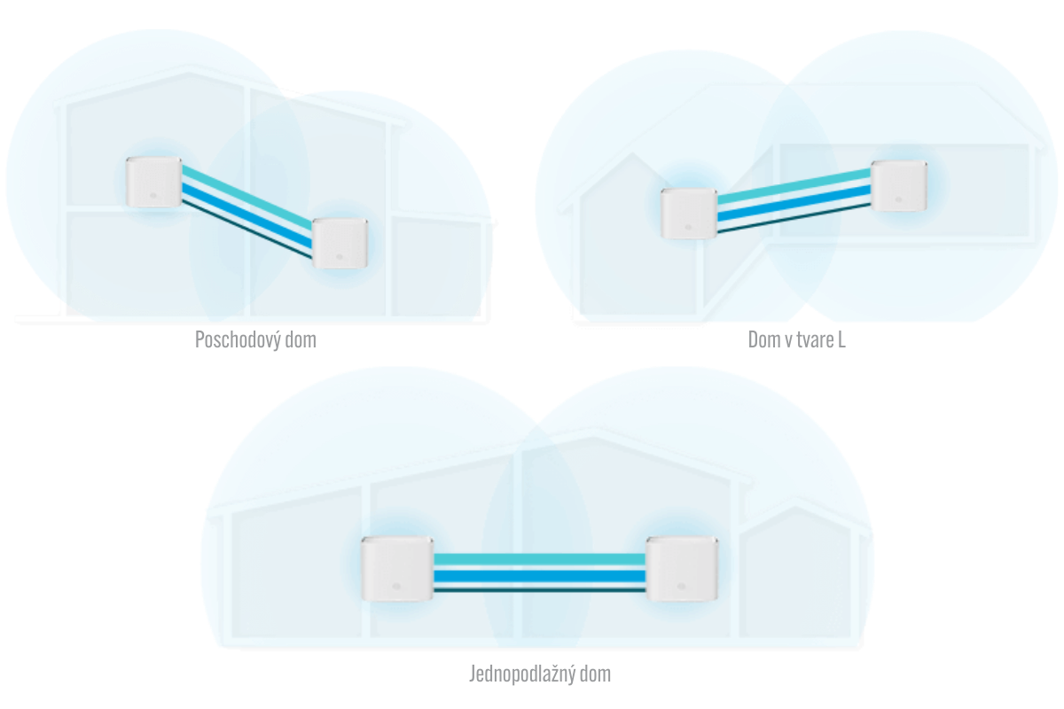 Mesh systém HX520 je určený pre domácnosti, ktoré potrebujú stabilný signál v každej izbe – aj na poschodí, v záhrade či na terase. Jednotky spolu vytvárajú jednotnú sieť, takže sa zariadenia automaticky pripájajú na najsilnejší signál – bez výpadkov, bez prepínania.